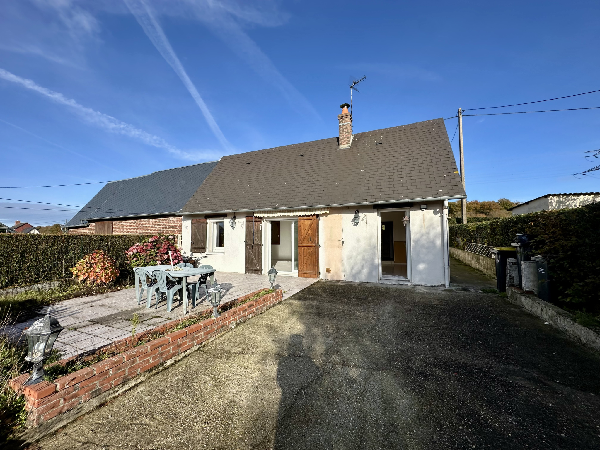 À Saint-Nicolas-d’Aliermont, dans un bourg dynamique avec tous commerces et services, cette maison mitoyenne d’un seul côté offre calme et confort. La mitoyenneté concerne une grange servant au stockage de foin, sans aucune nuisance.